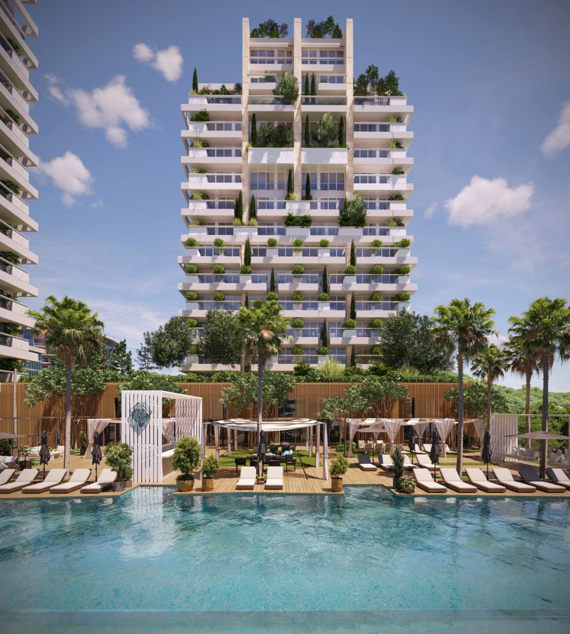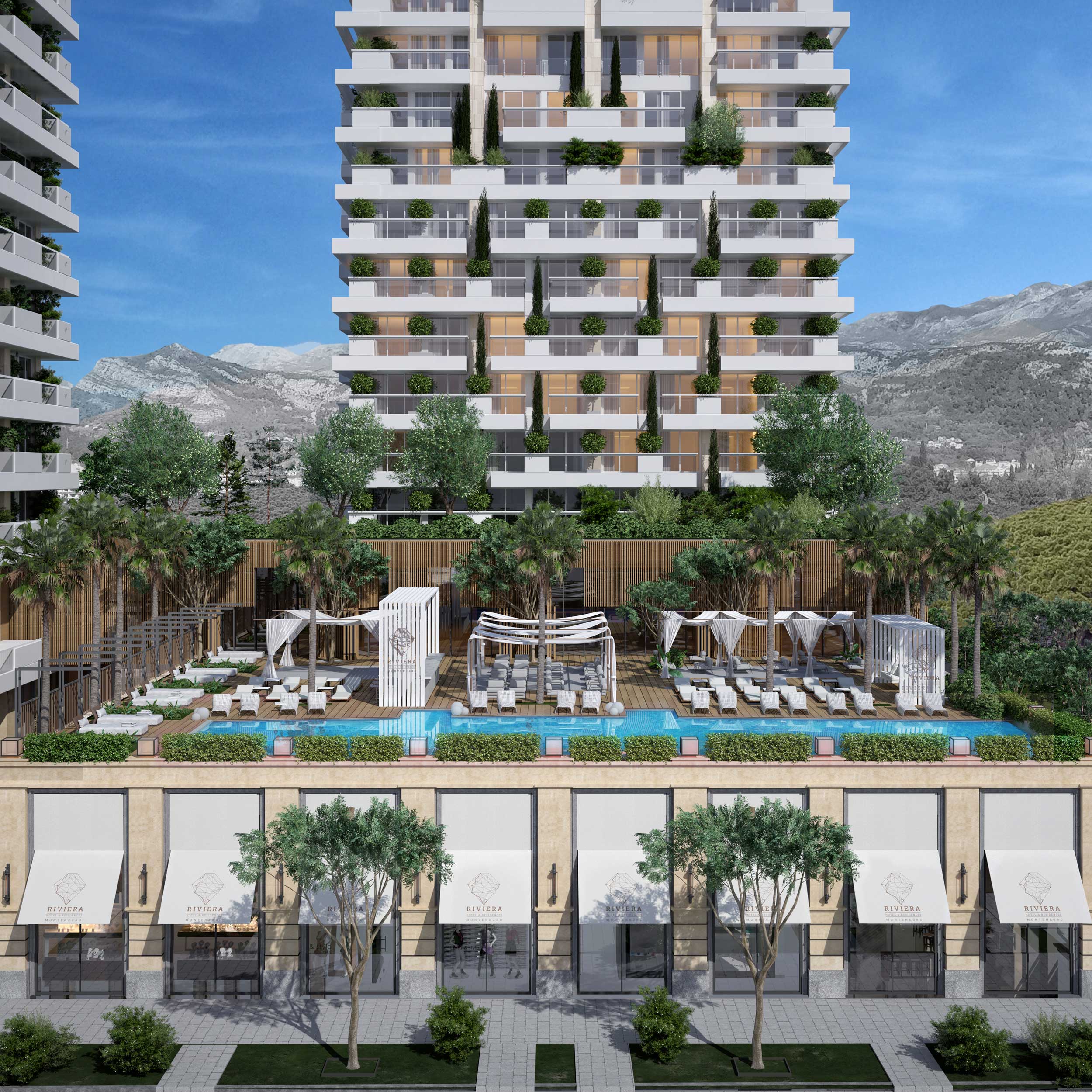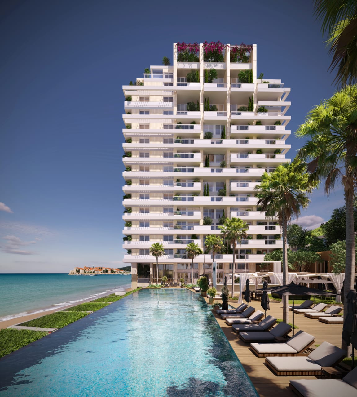 Jednosoban stan u luksuznom kompleksu na nivou 5* na pjeni od mora. Kompleks je smješten na prvoj liniji do mora, od obale ga dijeli samo 20m. Sastoji se od ukupno 212 stambenih jedinica, 5* hotela sa 144 apartmana i tržniog centra. Budući vlasnici će na raspolaganju imati infinity bezan površine 600m2, brojne barove i restorane na krovu objekta, privatnu plažu, tržni centar, spa centar i teretanu, zatvoreni parking kao i Concierge uslugu 24/7.