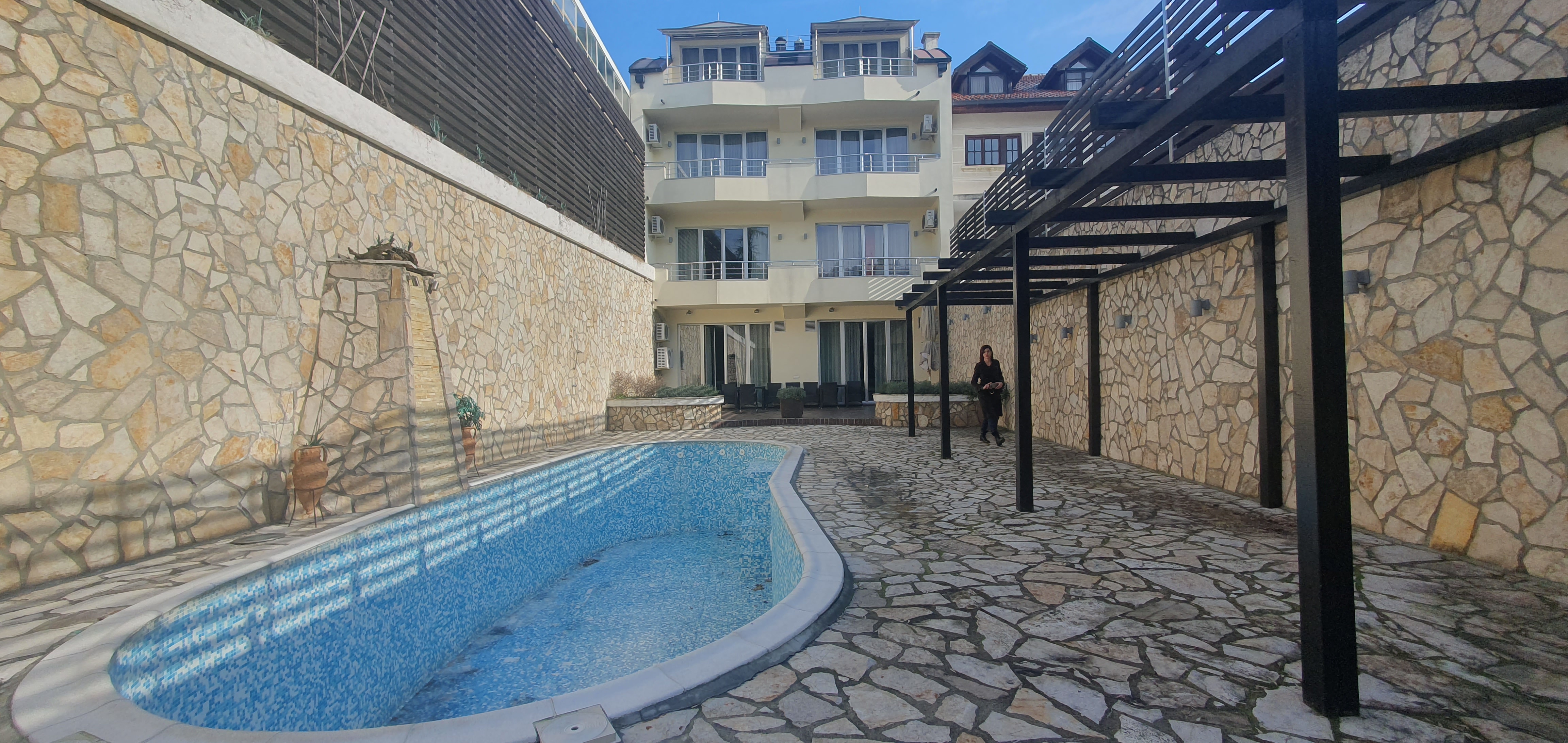 Nudmo hotel sa 10 apartmana na lako dostupnoj lokaciji. Svaki aprtman ima svoje kupatilo. Kuhinja i trpezarija su smešteni u prizemlju objekta odakle se izlazi na unutrašnje dvorište sa bazenom i gril zonom. Hotel ima dobro razvijen i uhodan posao sa odličnom popunjenošću kapaciteta.