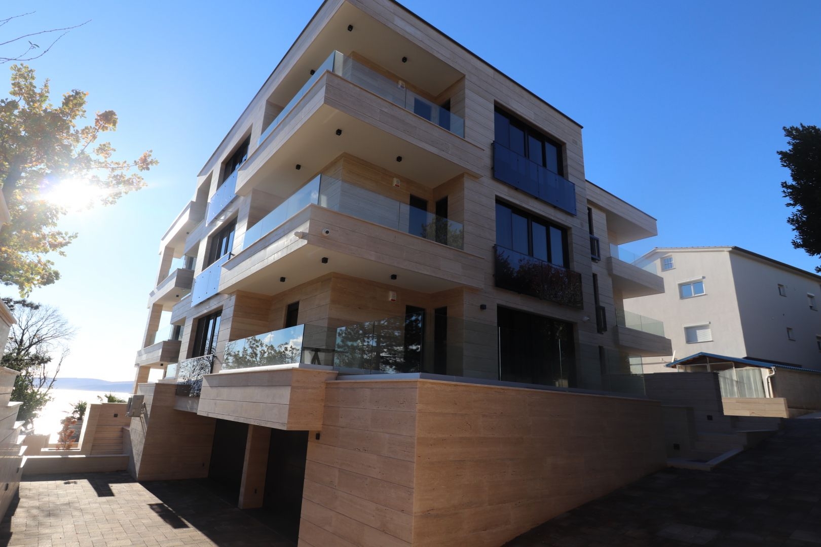 We offer a luxury villa in a unique location in Crikvenica. The modern villa has six luxury apartments, located in the 2nd row from the sea and the beautiful beach. In addition to belonging to the A energy class, the villa is equipped with luxury equipment, sanitary ware and tiles and aluminum joinery to achieve an unobstructed panoramic view of 50 shades of blue and achieve communication between the living room and terrace as a whole. The villa also has an underground garage for cars from which the elevator goes to the floor to each apartment. In the basement / garage space, each apartment has its own storage space (26 m2) and its own garage space (10 m2).