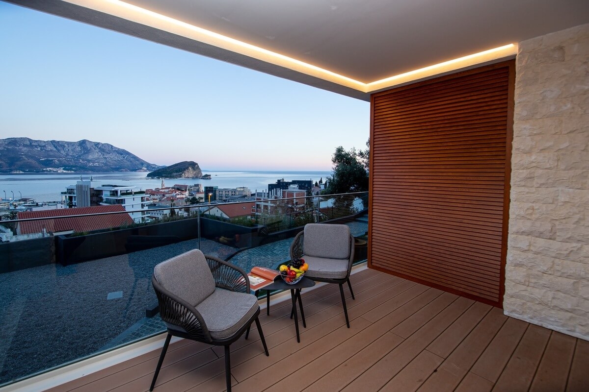The incredible location provides privacy to its residents while being close to the center of Budva and offering a magnificent view of the sea, the entire Budva Bay, and the 2,5-millennia-old Old Town Budva.