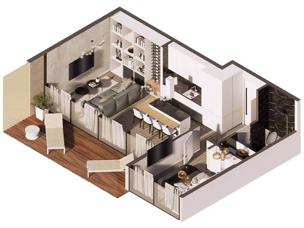 The apartment we offer is located in a sophisticated residential complex in Budva, built in 2022. The location is 350 meters away from Budva’s Old Town and the sea.