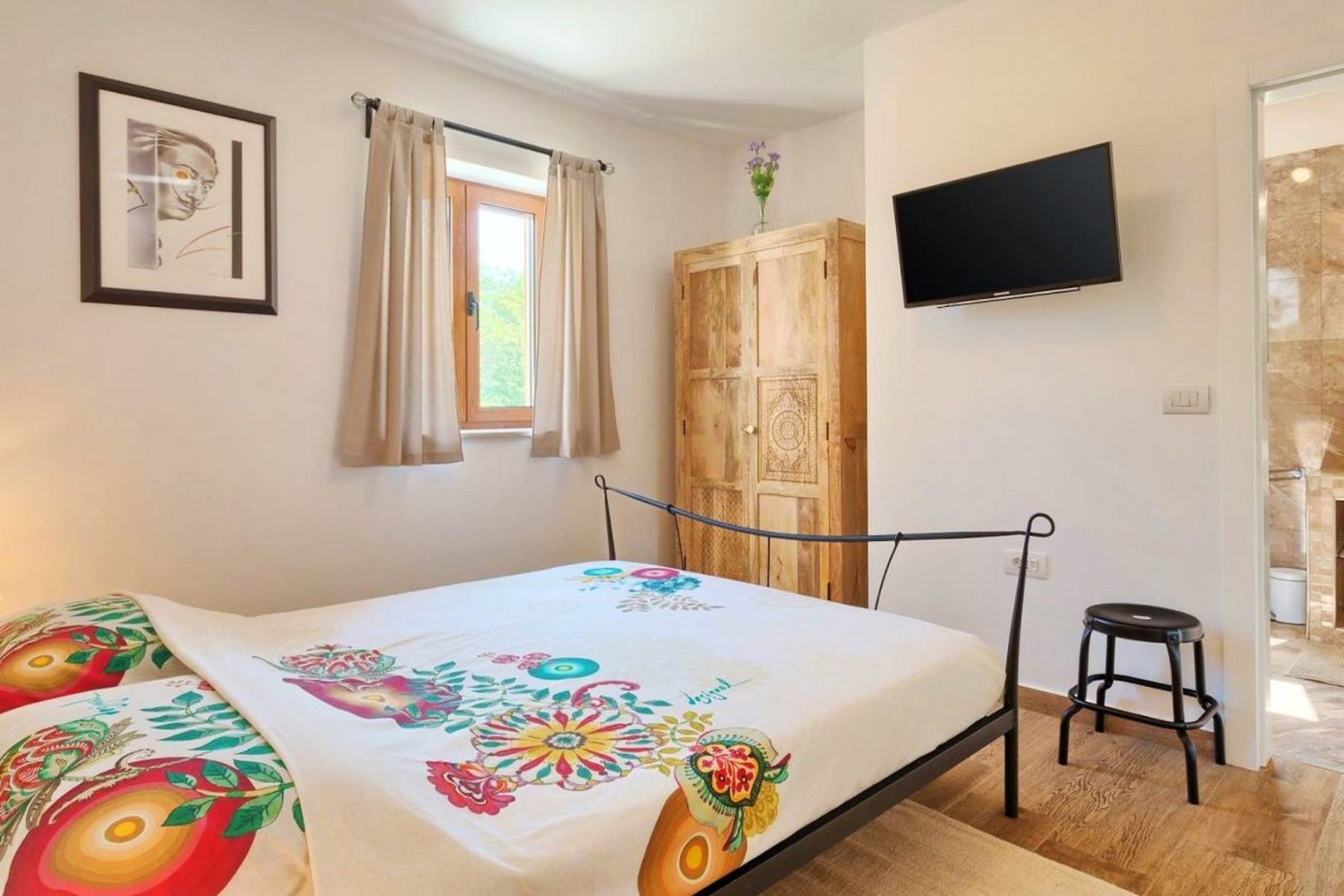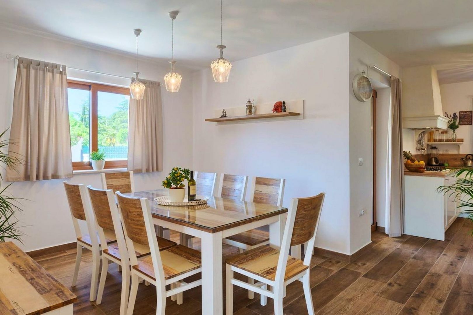 This beautiful family villa is located in this location, only 7 km from the center of beautiful Rovinj, which will enchant you with its character and quality. This family diva with its 250m2 of living space will provide you with everything you need to spend your stay in it peacefully and safely. With its quality and carefully selected materials, it will certainly not disappoint you. The space in the villa is organized in a way to ensure a comfortable stay worthy of today’s standards and modern lifestyle, so its 250m2 is divided into a total of two floors, ground floor and first floor. On the ground floor of the villa, next to the lobby, there is a spacious living room with a functional fireplace, which is illuminated by daylight throughout the day. You can prepare your favorite and most delicious delicacies for family and friends in the spacious and modern kitchen, while you can taste them together in the dining room that separates the living room from the kitchen in a larger open space.