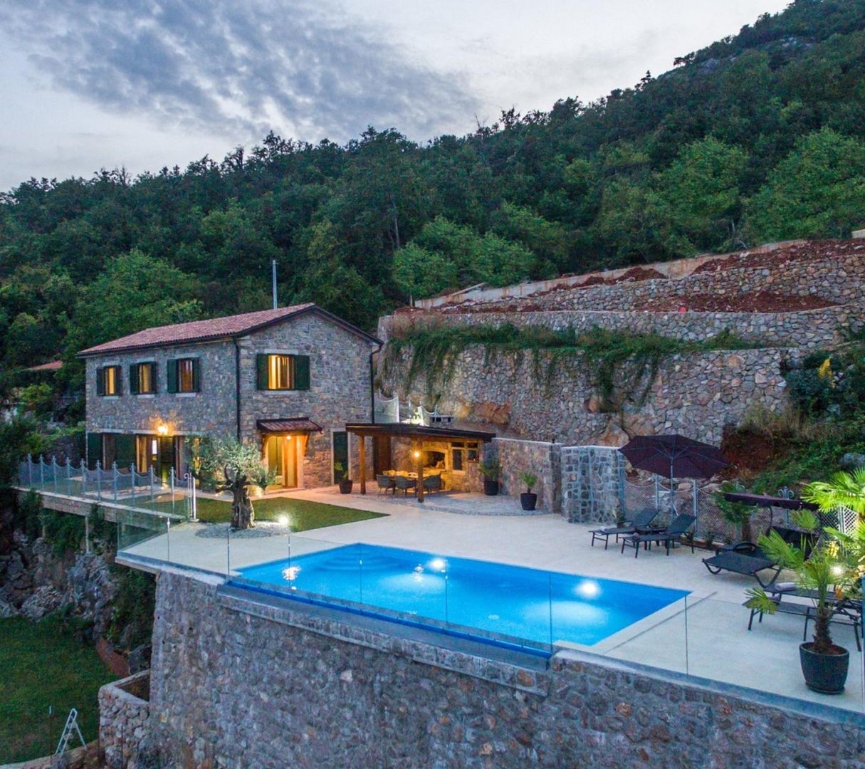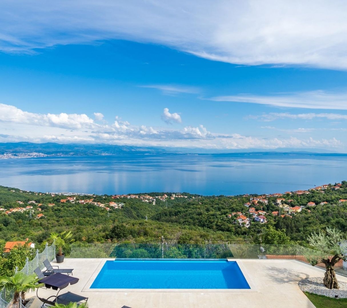 We offer a beautiful detached villa with panoramic views of the Kvarner Bay. The villa is excellently designed and equipped with all modern amenities. It consists of a living room with kitchen, 3 bedrooms, 2 bathrooms with bidet, summer kitchen with large truck, huge terrace, storage room, swimming pool and private covered parking. The villa was completely renovated in 2018. Allow this unique property, top quality and modern design, imbued with a Mediterranean atmosphere, to delight you… All you need is to peek inside!