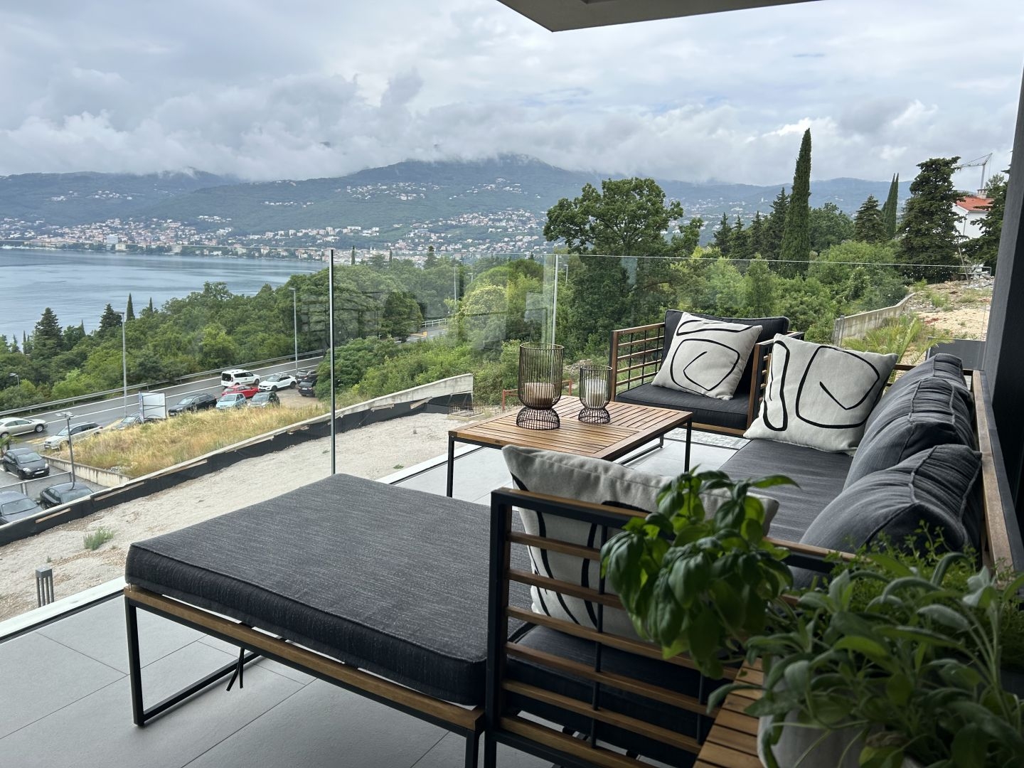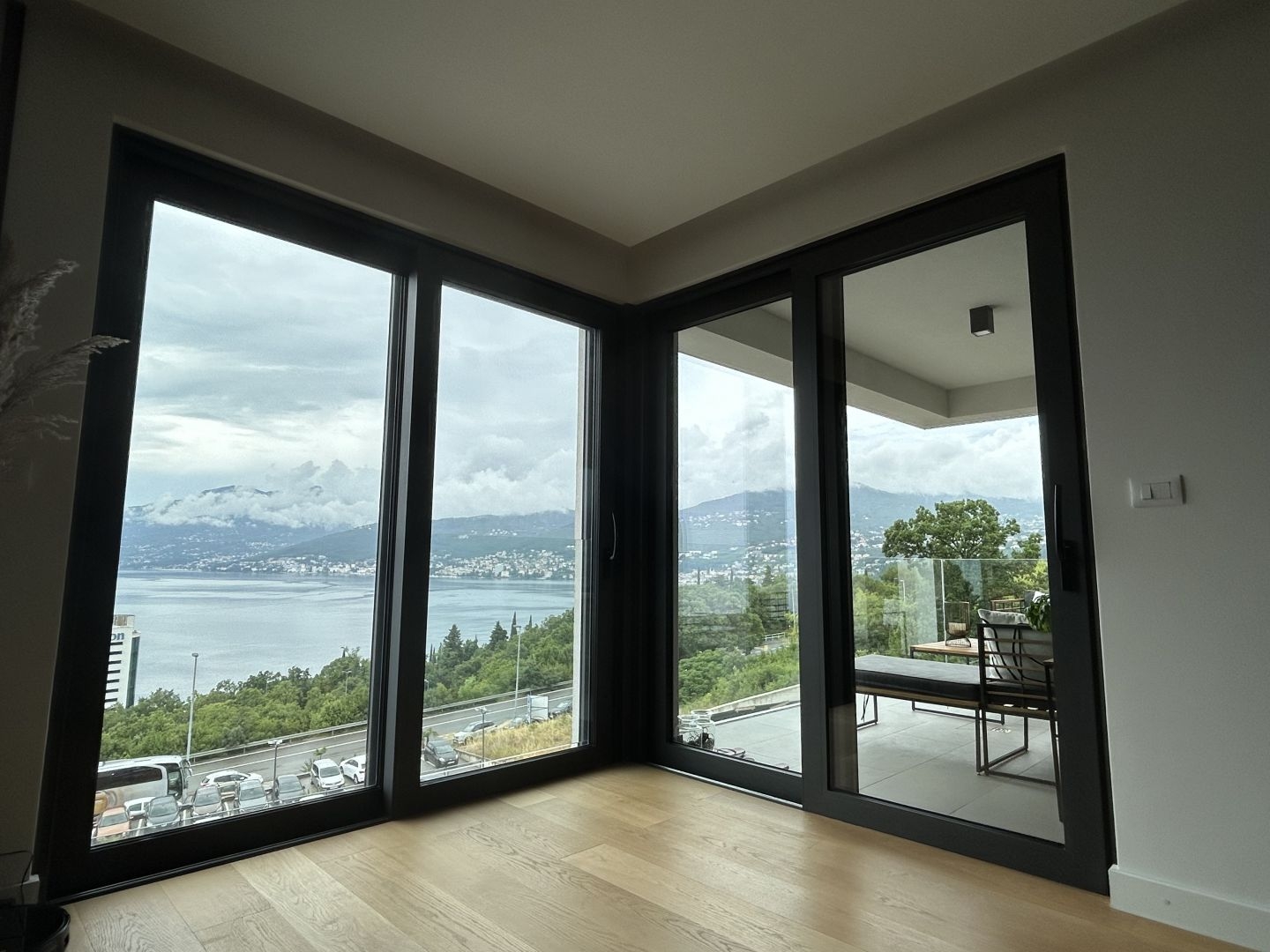 We are selling an apartment in a newly constructed building in an excellent and premium location. It consists of an entrance hall, two bedrooms, an open space living room with a kitchen and dining area, a bathroom, and a toilet. The spacious terrace offers a beautiful view of the sea and Opatija town.