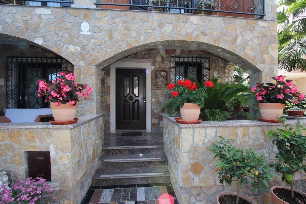 This excellent property consists of four separate residential units. The ground floor apartment features a spacious living room connected to the kitchen and dining area, one bedroom, and a bathroom. In another part of the ground floor, there is a boiler room and a garage that has been converted into a space for socializing and entertainment. This ground floor area also includes two covered terraces. On the upper floor, there are two separate units; one with one bedroom and the other with two bedrooms. Both apartments have access to a shared covered terrace. The property also includes a separate studio apartment that is detached from the main building or house. There is ample parking space for four cars within the yard.