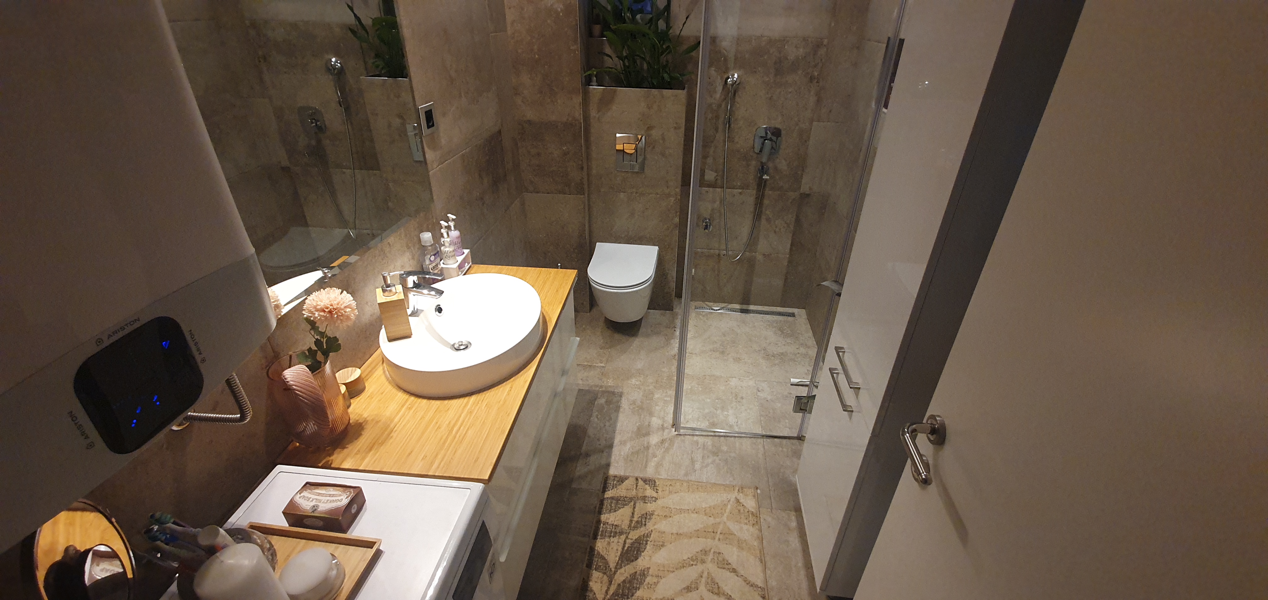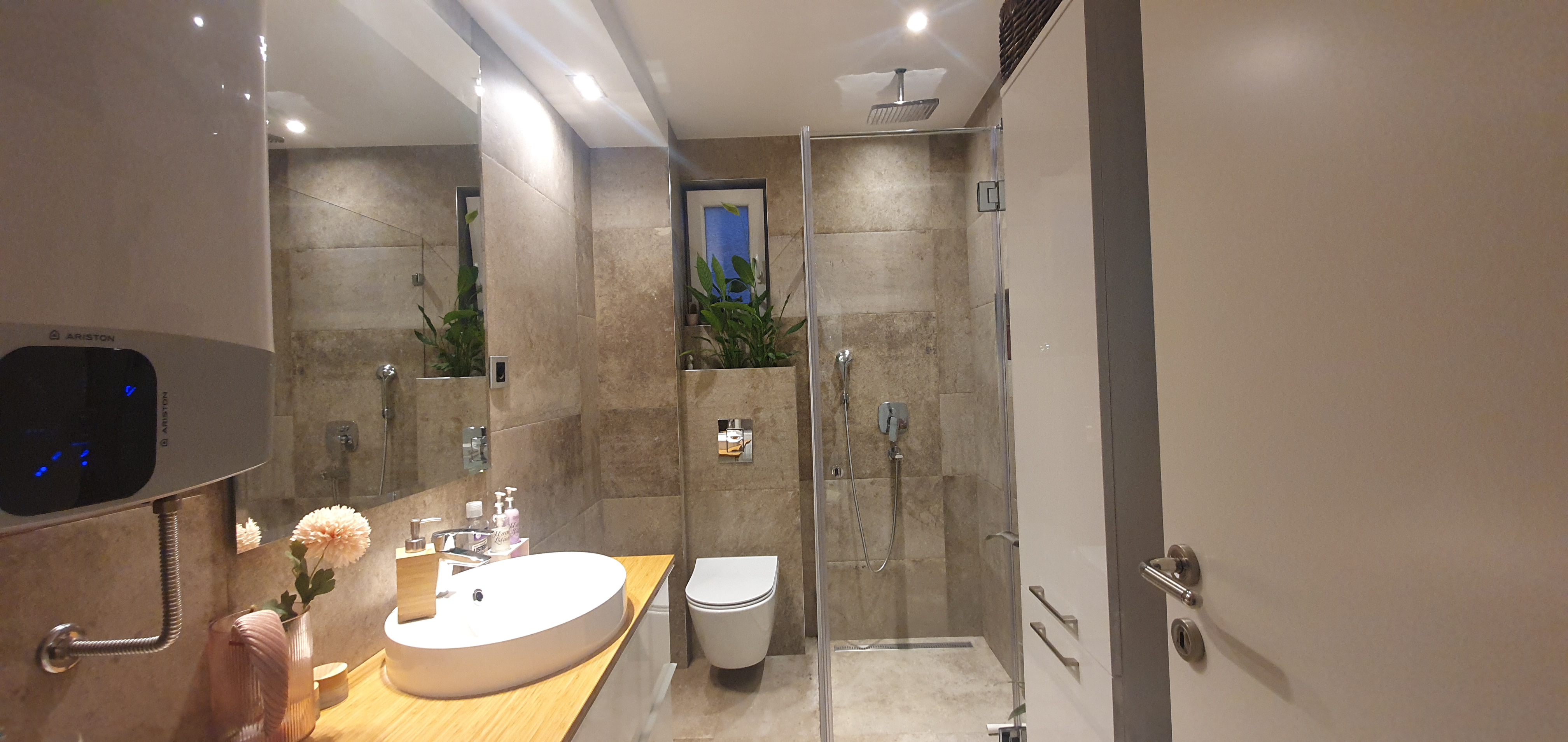 The apartment consists of an entrance hall, a spacious living room, a kitchen, a hallway, two bedrooms, one bathroom, and two balconies. The bedroom area is separate, and the bathroom is comfortable with natural ventilation. The balconies are accessible from the living room and one of the bedrooms. The apartment comes with a fitted kitchen, wardrobes, and some furniture. It’s of high quality with Spanish ceramics, aluminum blinds, Bosch appliances, Daikin air conditioning, and Grohe sanitary ware. The building also offers residents a spa center with a large pool, and parking space is available. There’s an option to purchase a garage as well. The property is registered and available for quick occupancy. The agency commission is 2% of the agreed-upon price of the apartment.