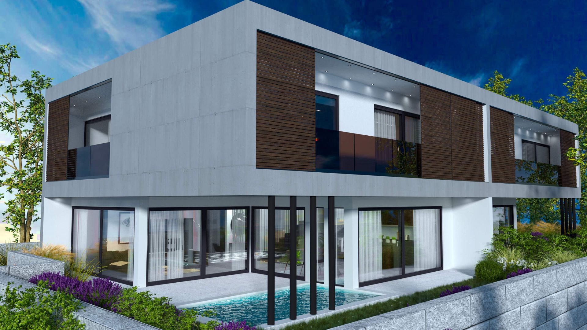 projekat moderne urbane vile sa bazenom na izvrsnoj lokaciji , 100m udaljena od mora i prvih plaža. vila će se prodavati kompletno nameštena i opremjena a useljenje je planirano za pril 2023.g.