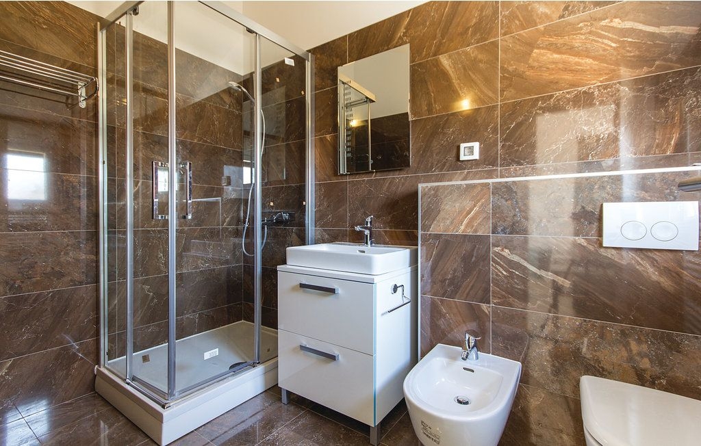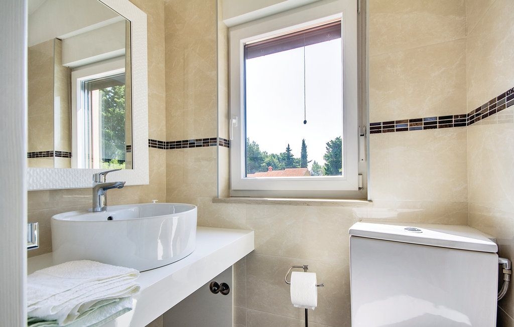 Prvi i drugi sprat se sastoje od kuhinje sa trpezarijom, prostranog dnevnog boravka sa kaminom, spremišta, dva toaleta, pet spavaćih soba sa svojim kupatilima i dve prostrane terase sa pogledom na more od kojih je jedna terasa natkrivena.