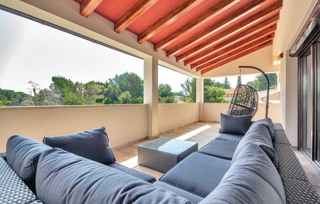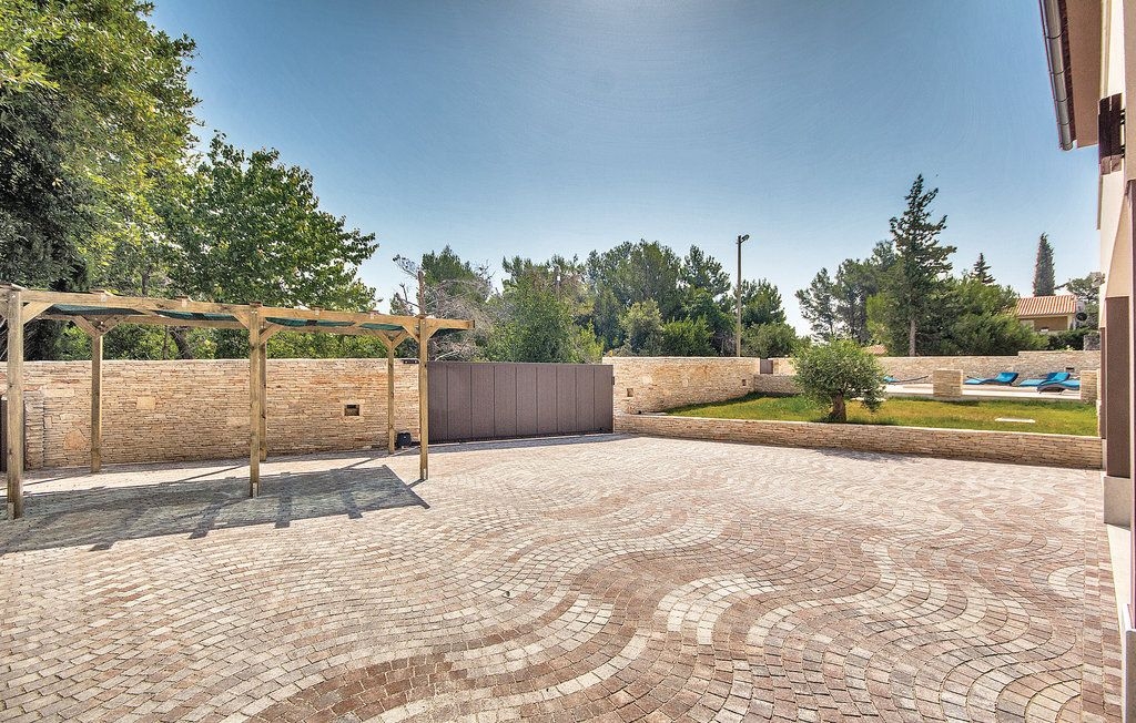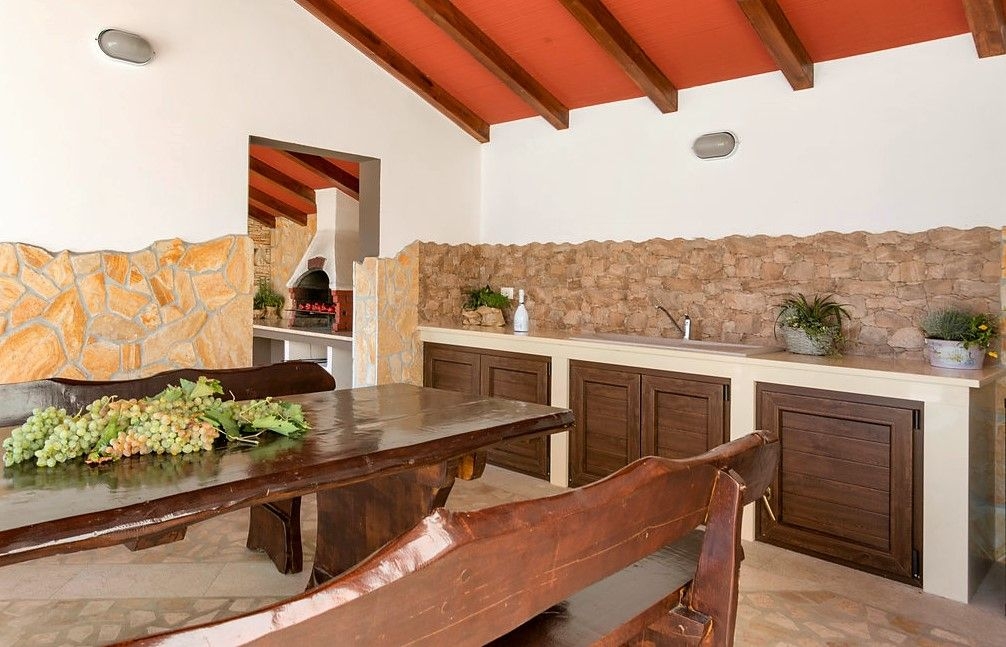 Kuća je samostojeća bruto površine 370 m² nalazi se na uređenom, navodnjavanom zemljištu od 975 m², na kojem se nalazi i grejani bazen površine 32 m² sa sunčalištem, dva vanjska kamina, letnja kuhinja, dva skladišna objekta i parking prostor.