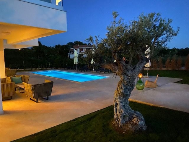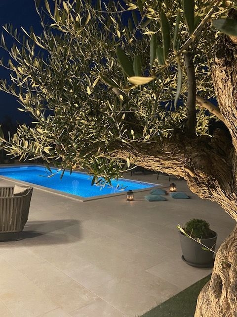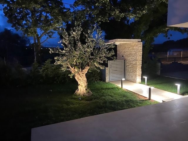 Ova atraktivna vila smeštena je samo nekoliko km od Poreča u malom istarskom selu, u mirnom i ugodnom okruženju. Na prostranoj okućnici vile nalazi se veliki grejani bazen koji svojom pozicijom iskorištava maksimalan broj sunčanih sati u danu. U dvorištu vile ističe se letnja kuhinja sa stolom za obed gde se može pripremati roštilj na drveni ugljen ili u predvečerje odmarati u lounge foteljama s pogledom na osvetljeni bazen i predivnu staru maslinu.