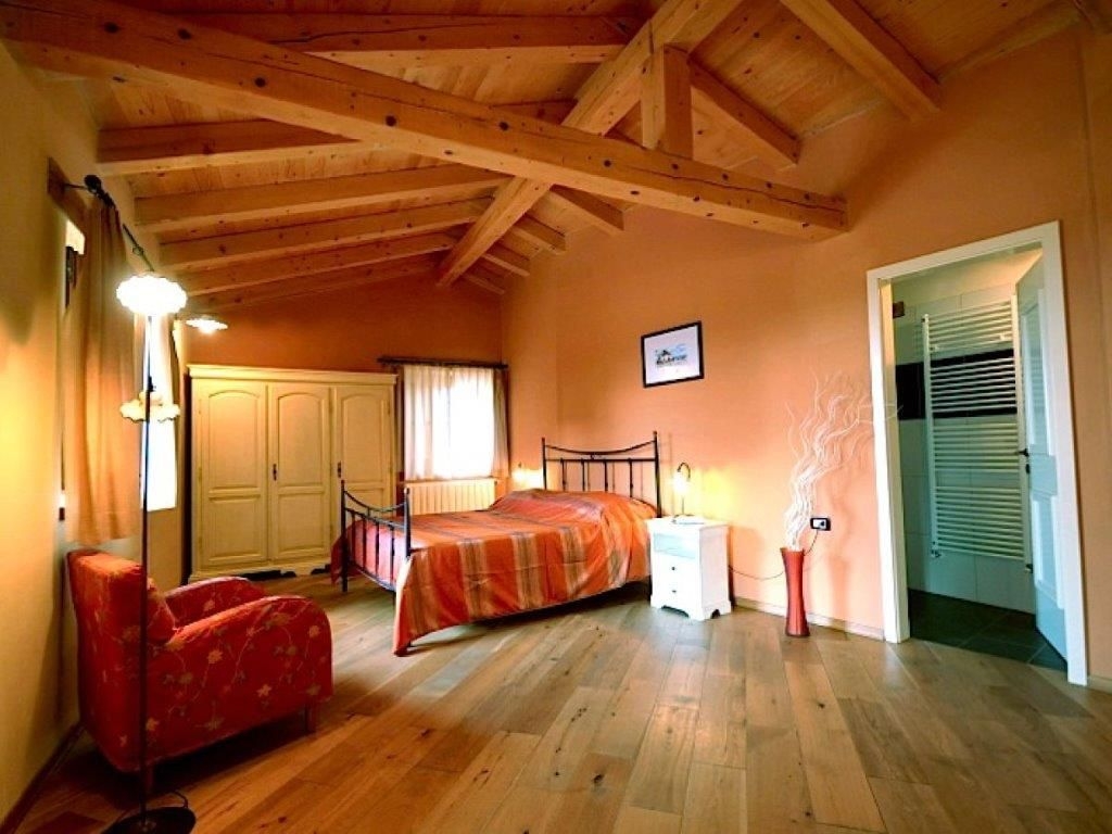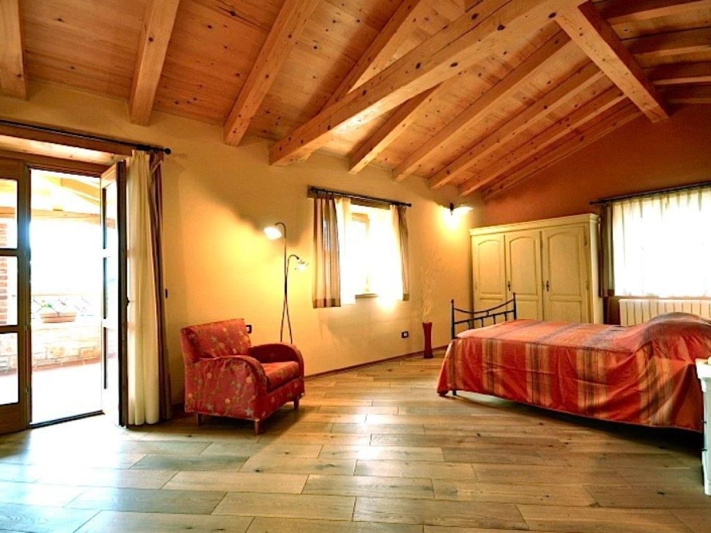Na spratu su tri spavaće sobe, svaka sa svojim kupatilom. Jedna od soba na ima izlaz na natkrivenu prostranu terasu s koje se pruža pogled na okolni krajolik.