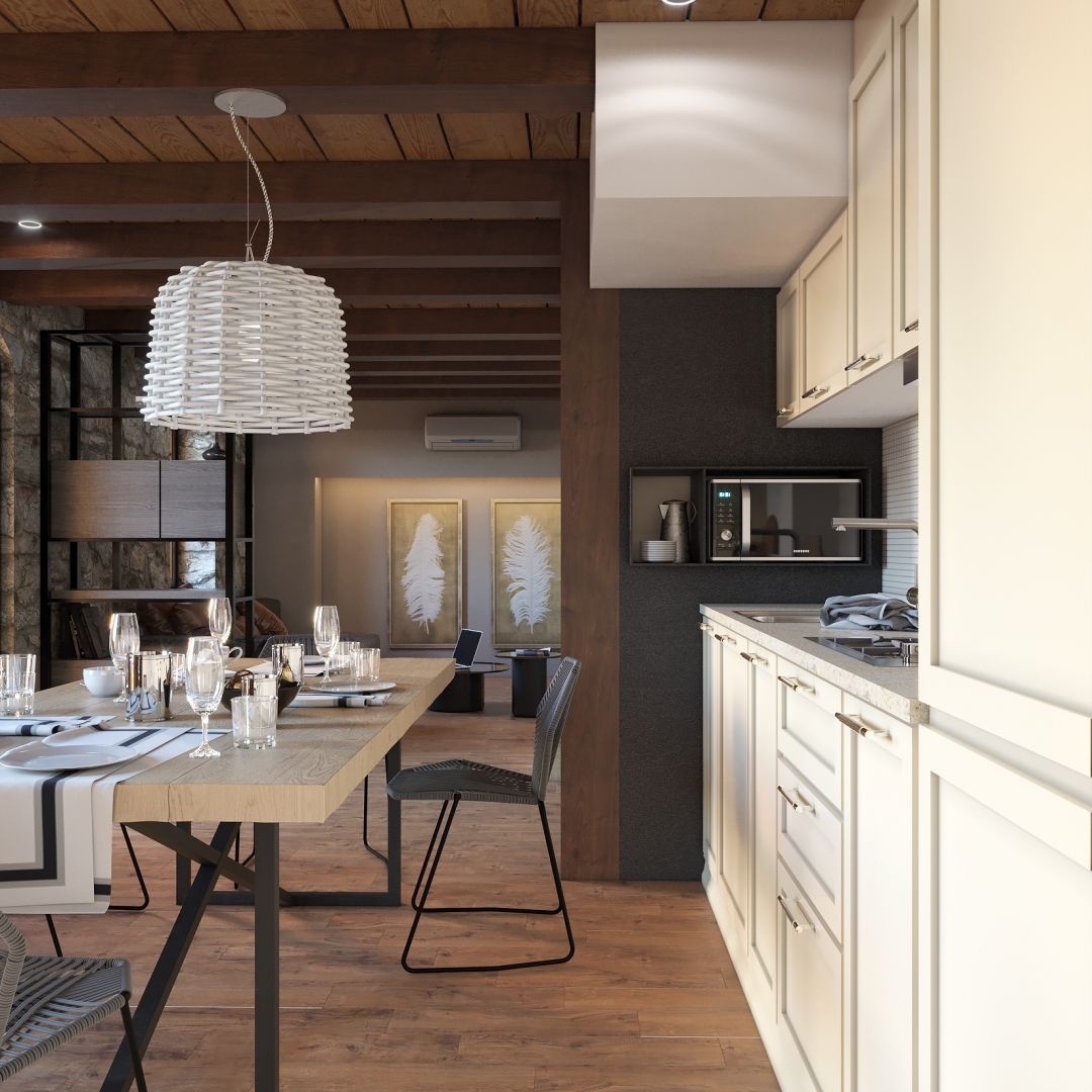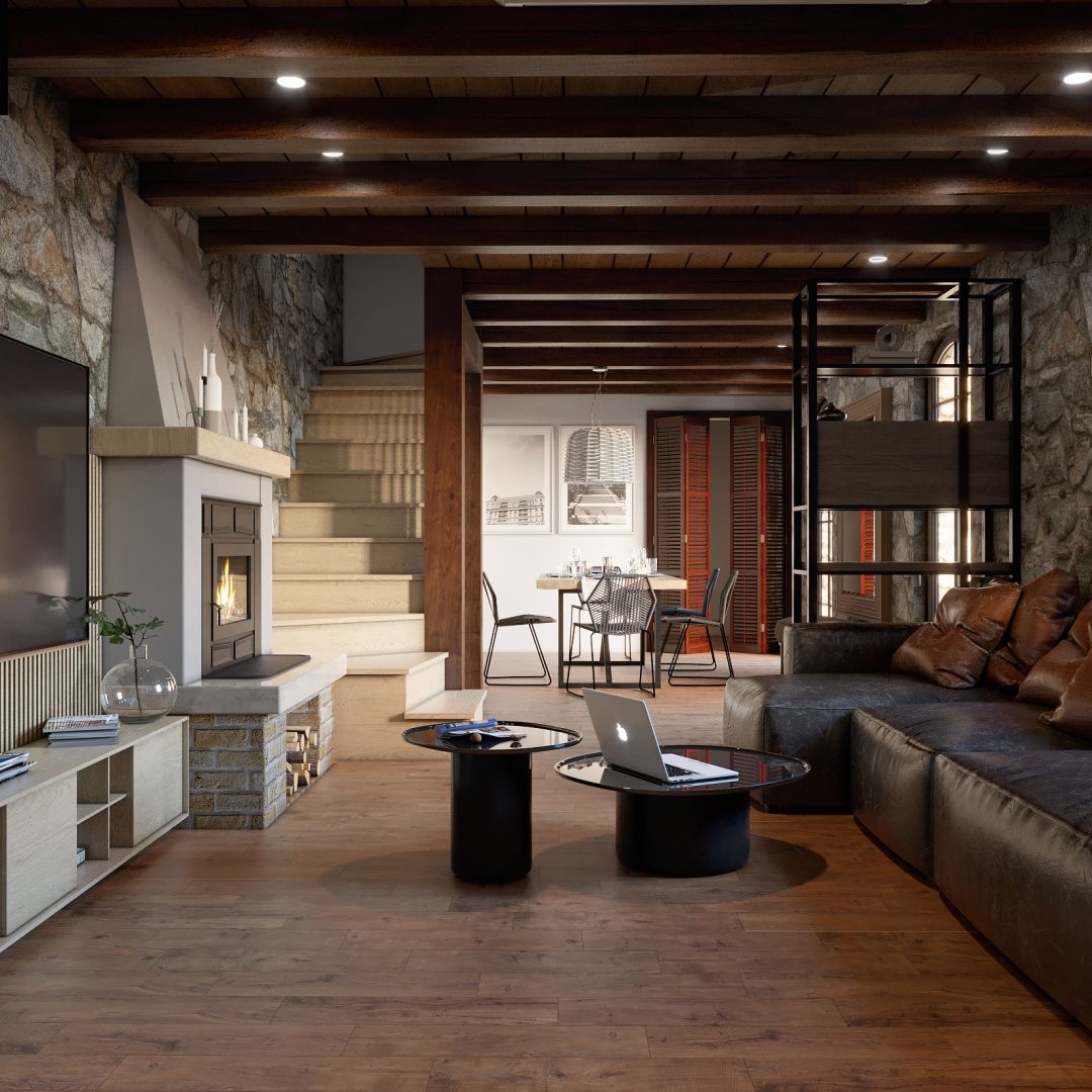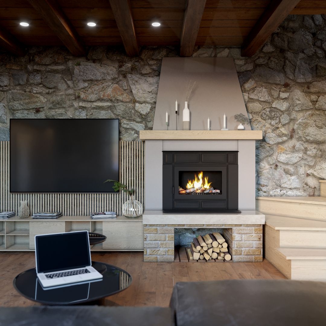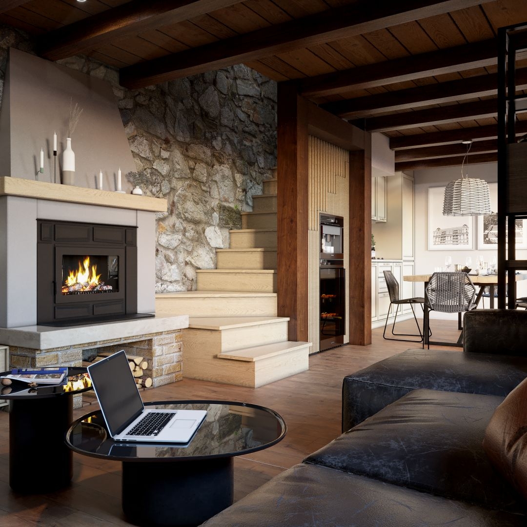 Podno grejanje, kamin, kuhinja po meri, dizajnerski namještaj, velika kupatila.