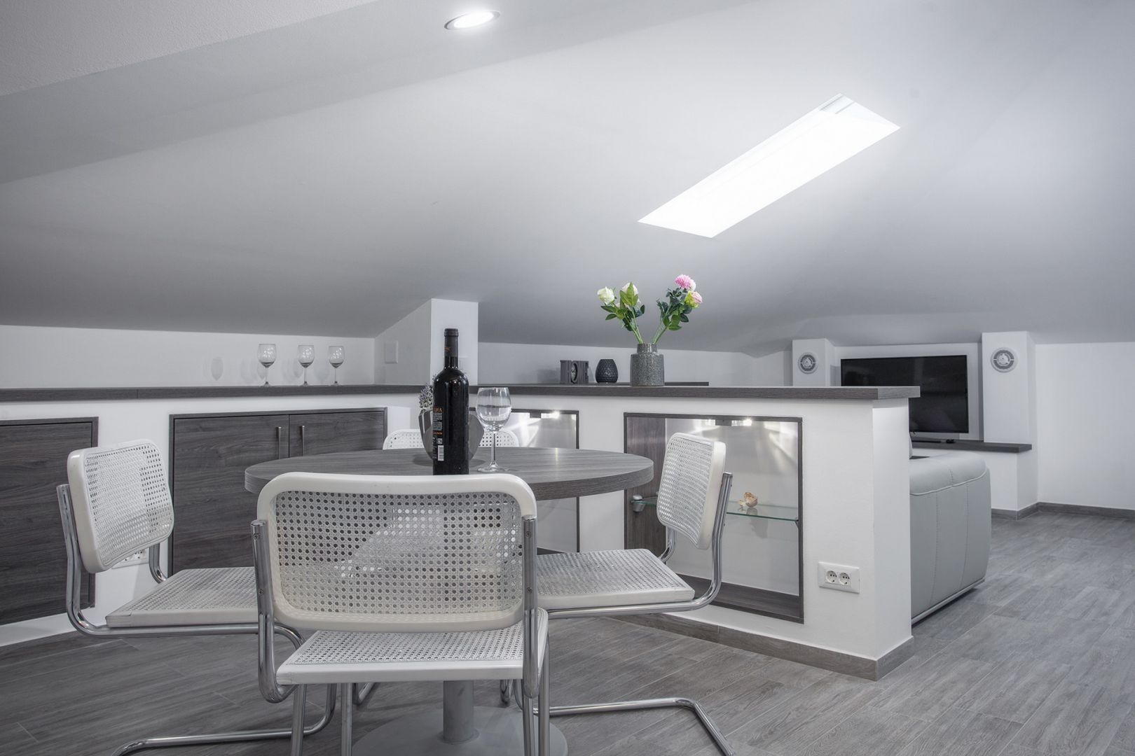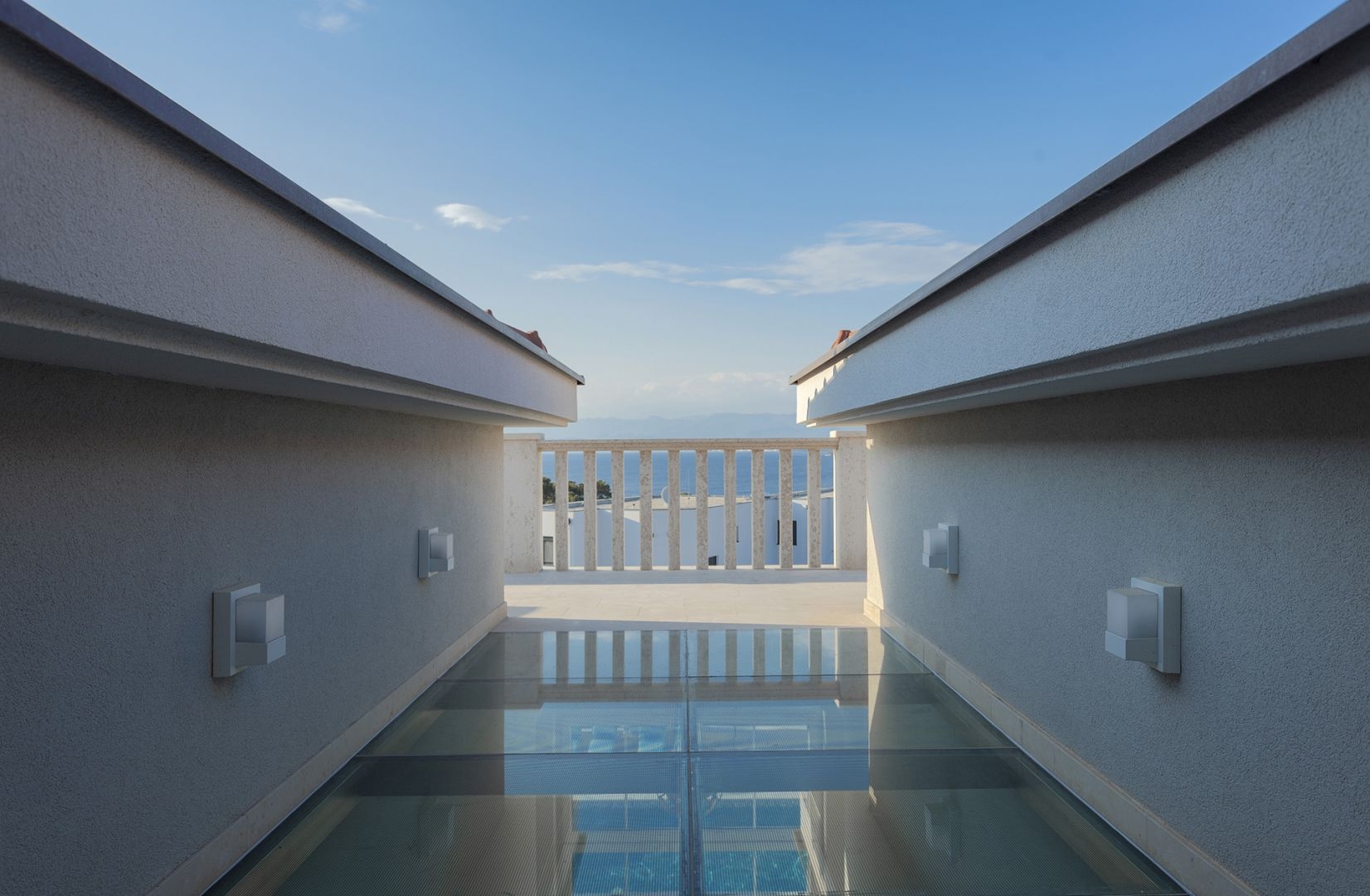 Na drugom spratu odnosno u potkrovlju su još dva jednosobna apartmana. Iz hodnika se izlazi na veliku terasu sa predivnim panoramskim pogledom na celi Kvarner.