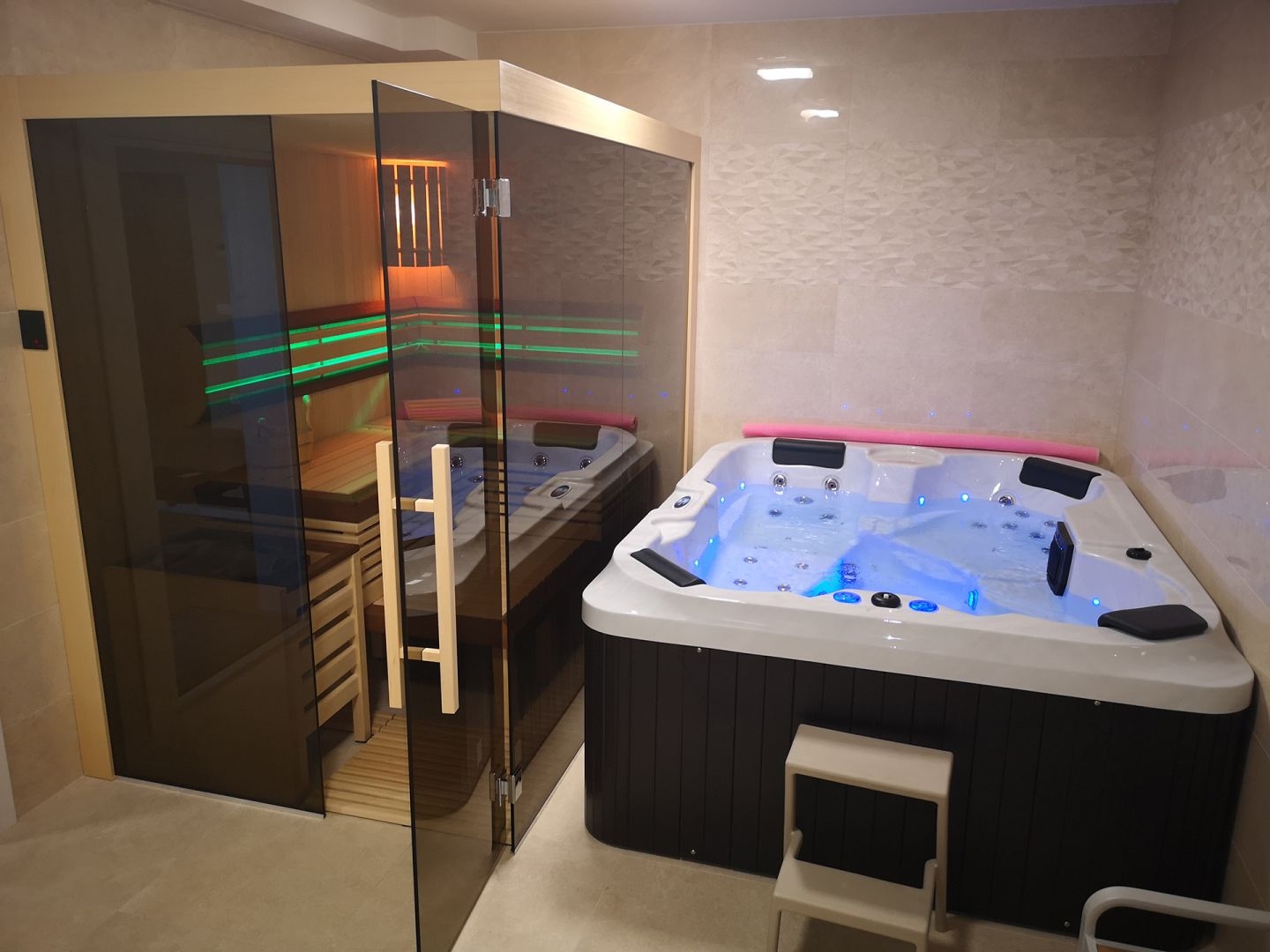 U suterenu je smeštena garaža sa punjačem za elektro auto. Tu je i fitness sala i wellness prostor sa jacuzzijem i saunom. U suterenu je smeštena i konoba sa luksuzno uređenim caffe-om za goste u kojem je plinski kamin na daljinsko upravljanje. Na ovoj etaži nalazi se i velika vešernica sa bojlerima i kotlarnica, kao i soba za osoblje.