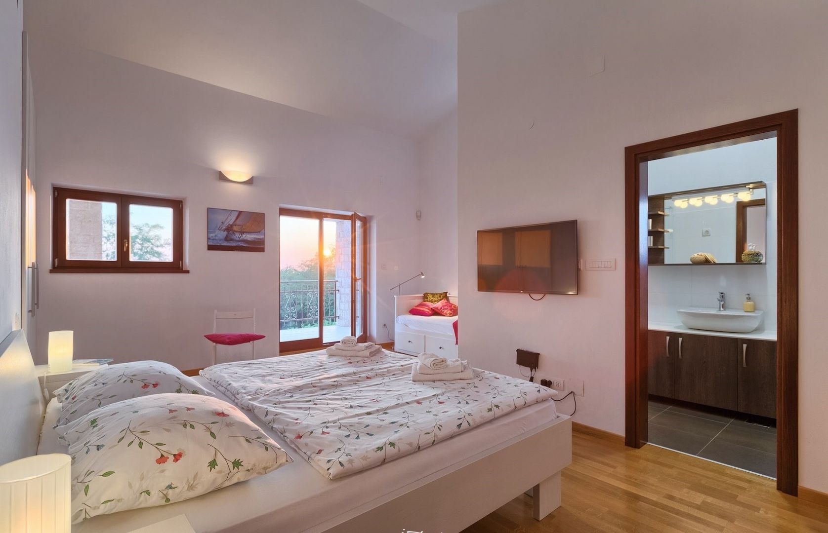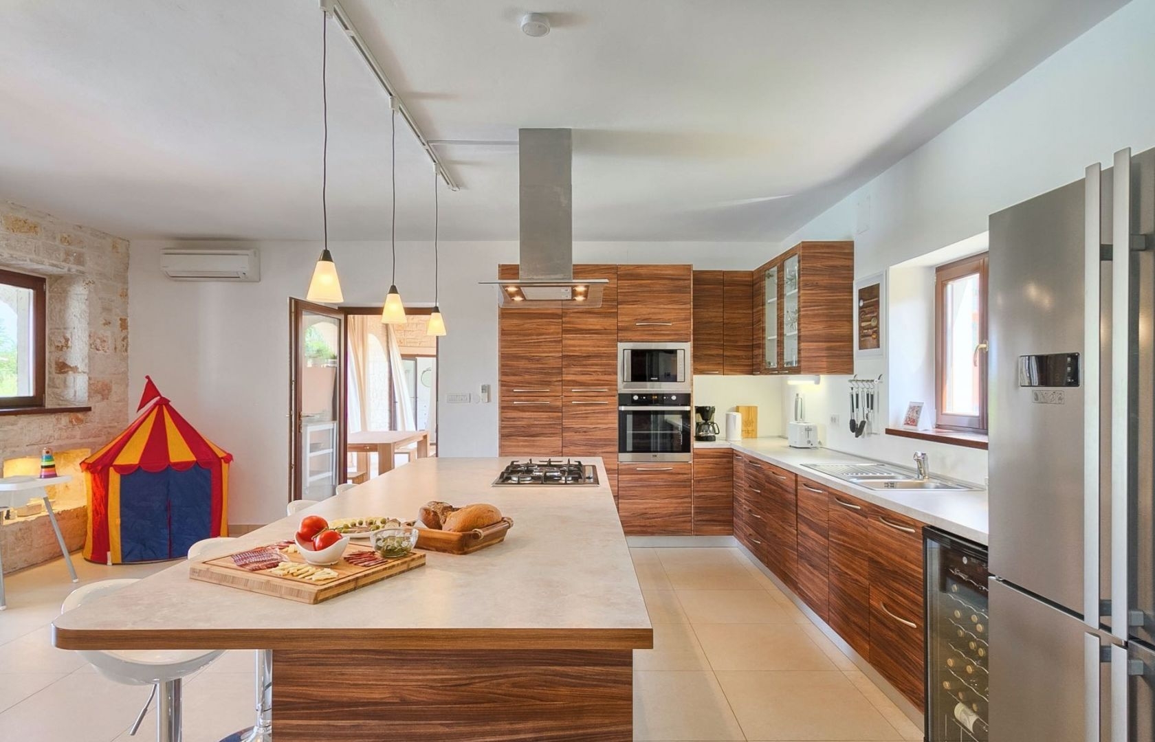 U mirnom delu selca, ova prekrasna vila predstavlja spoj modernog dizajna enterijera s tradicionalnom mediteranskom gradnjom te sadrži, pored ostalog i letnju kuhinju.