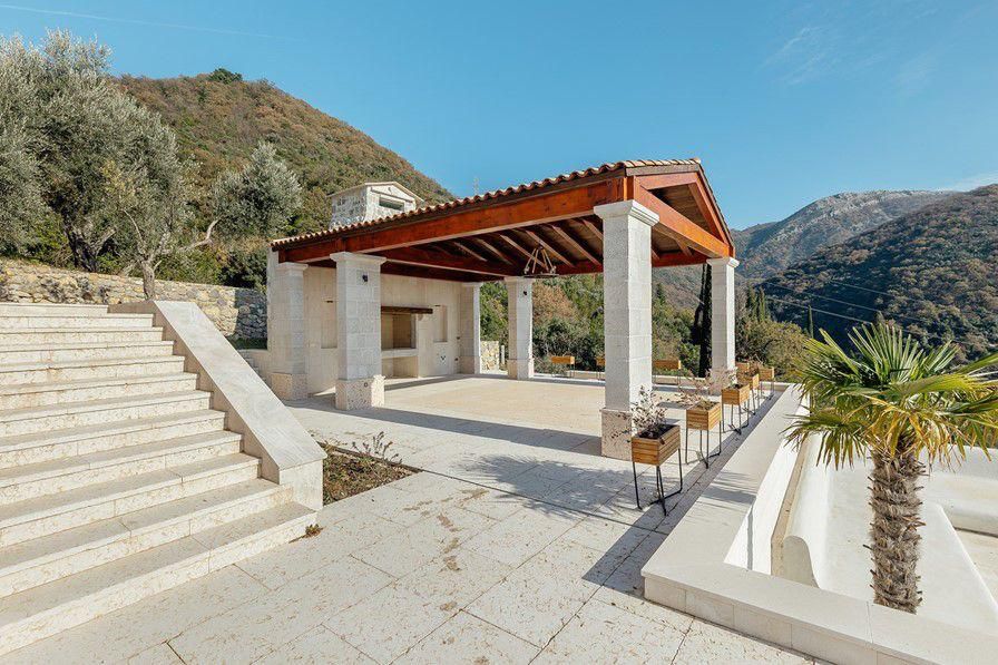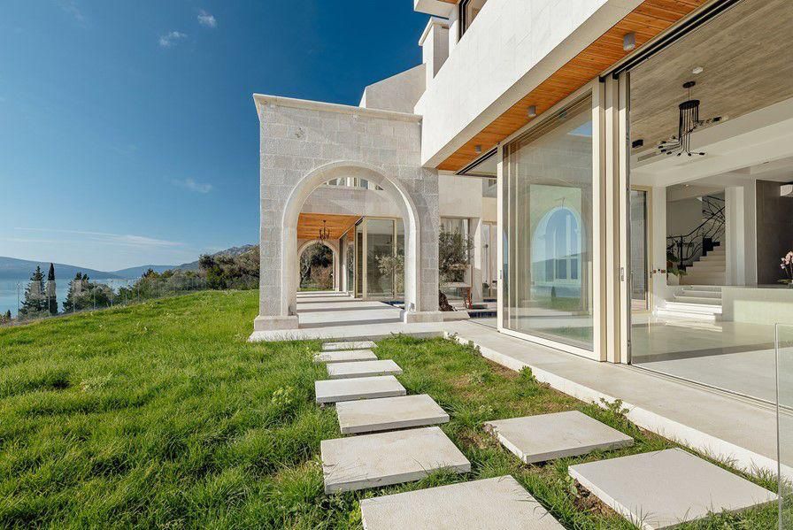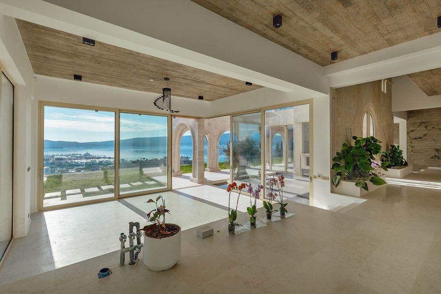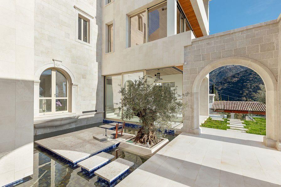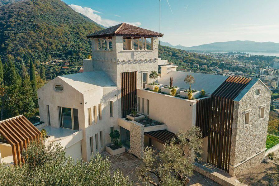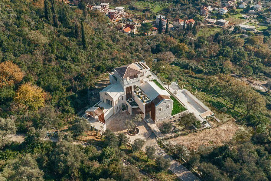 Ova fantastična nekretnina je smještena u prelijepom seoskom ambijentu na samo 500m od mora. Svojim dizajnom i arhitekturom se savršeno uklopila u prirodu koja je okružuje dok je istovremeno uspjela da isprati moderne trendove koji obezbjeđuju komforan boravak i život. Pri tom je smještena na zemljištu sa zasadima raznovrsnog voća, dekorativnog i aromatičnog bilja. Takođe, na zemljištu je i veliki broj maslina od kojih je jedno stablo staro više od 800 godina.