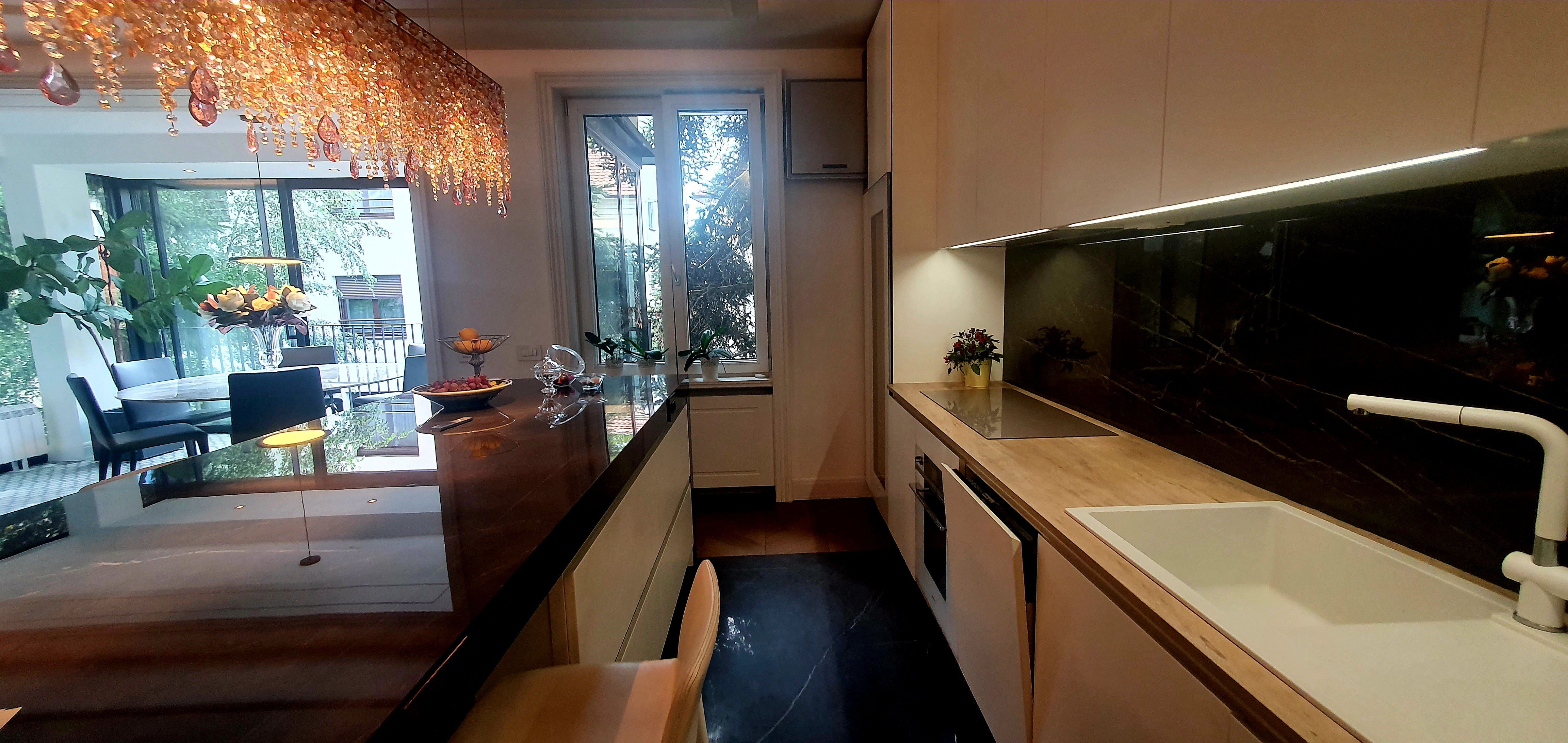 Stan mereno ima 126m2. Dnevnom boravku je pripojena zatvorena terasa – na kojoj je izvedena, struja i rasveta, grejno telo uz podno grejanje pod keramikom. Takođe, podno grejanje je u kuhinji i u oba kupatila.